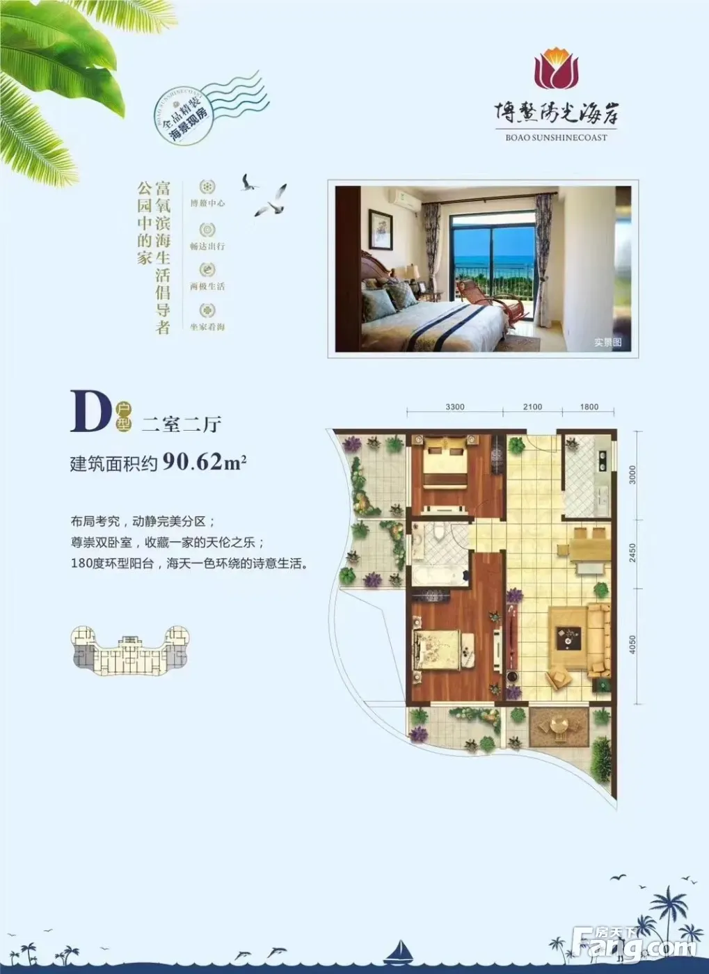 琼海·博鳌【阳光海岸】90㎡海景 精装两房 特价133万