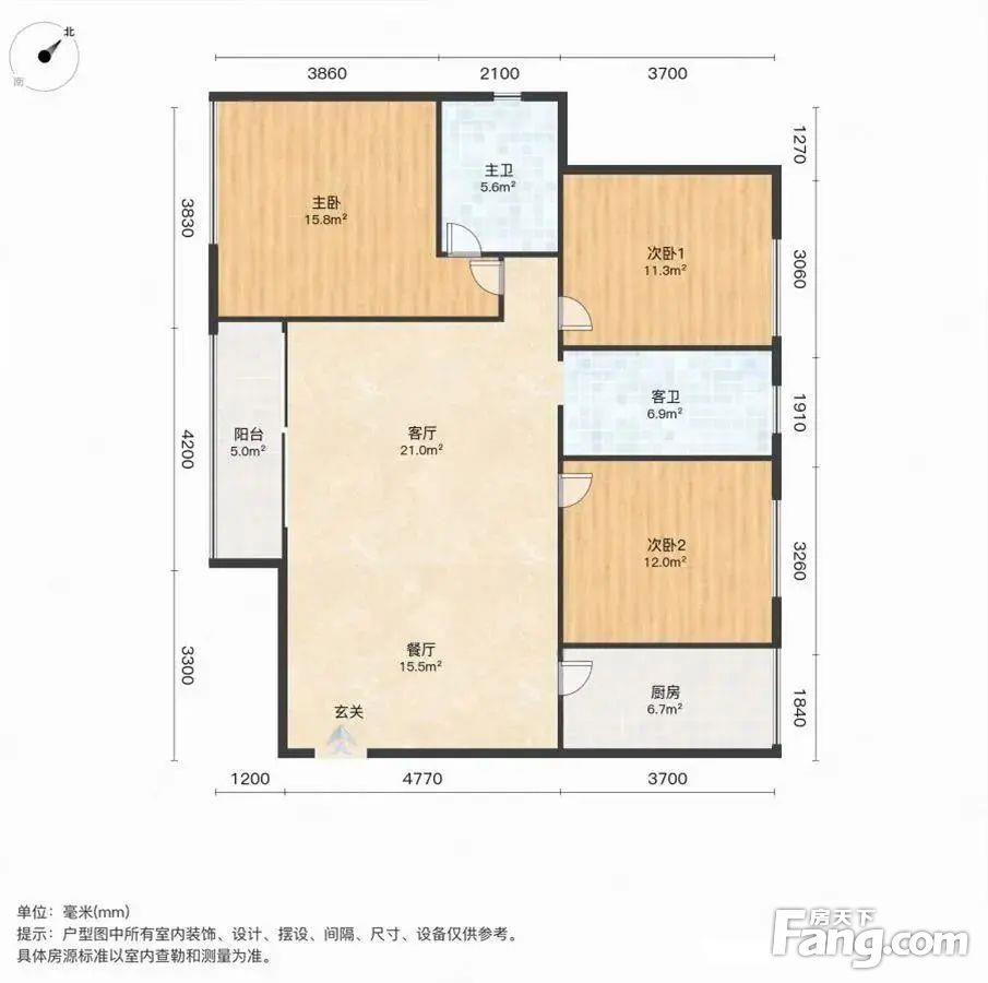 户型全面采光。南北通透,明厨明卫,通风采光好,户型方正。