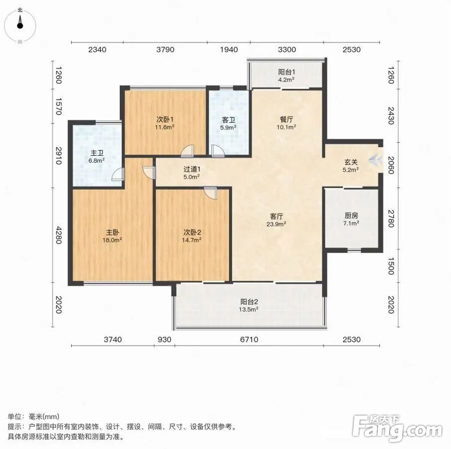 户型全面采光。南北通透,明厨明卫,通风采光好,户型方正。