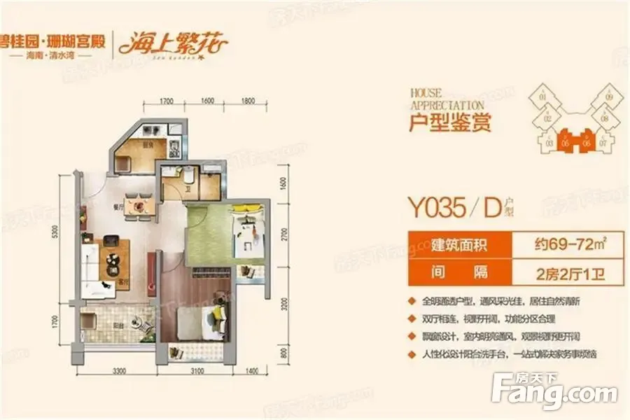碧桂园面积71.22平平 户型:两房两厅一卫楼层:中楼,总高楼产权:满五 位于神奇的北纬18线,海南湾区-清水湾;上市开发商碧桂园核心打造小区配套:配有10万平公园、5万平商业广场、蓝塘医疗、物业有提供免费的园区观光车供业主出行周边配套:两个标椎18洞高尔夫球场,多家五 酒店,绿城未来领导力、雅居乐双语、威德国际、约7.8万平米商业街(雅都会)、约5.8万平米(瀚海银滩商业街)、游艇码头、歌剧院、