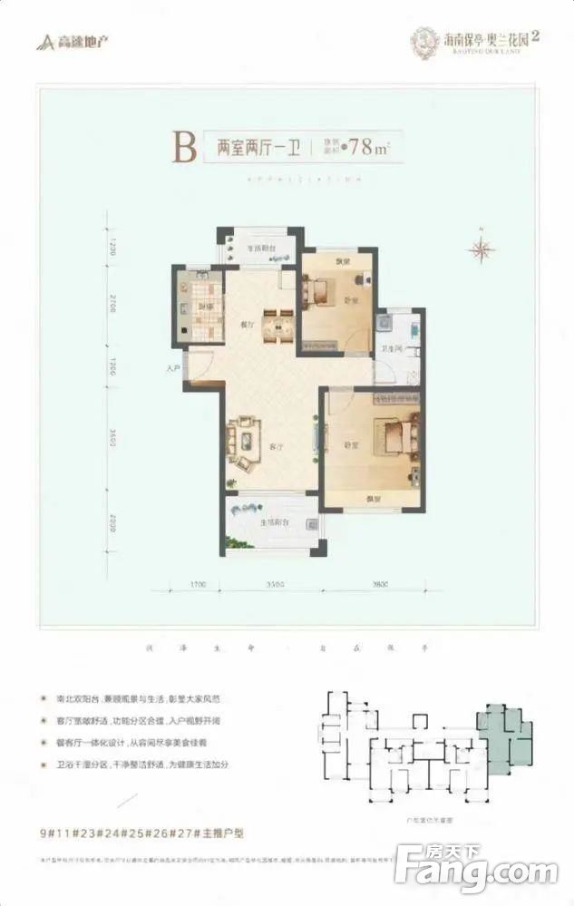 保亭奥兰花园 78平2居 南北向精装修,急售,价格便宜