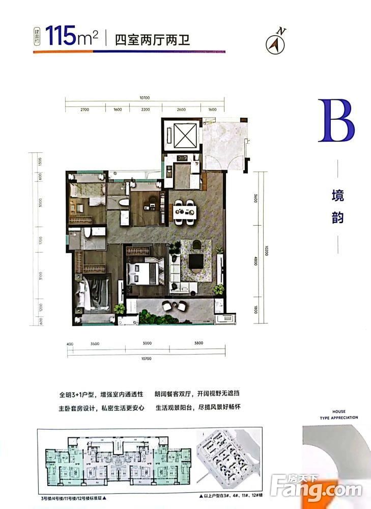 户型全面采光。南北通透,明厨明卫,通风采光好,户型方正。
