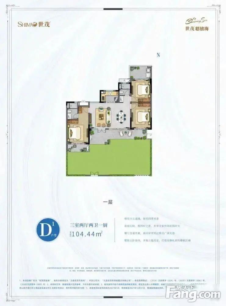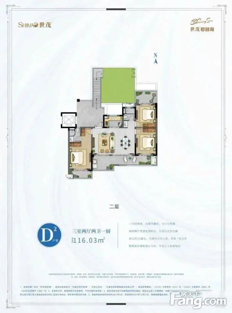 世茂怒放海 104平3居南北向精装修。一线海景房,50买三居