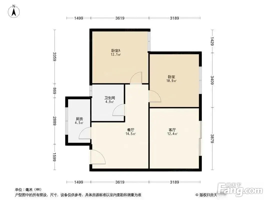 户型全面采光。南北通透,明厨明卫,通风采光好,户型方正。