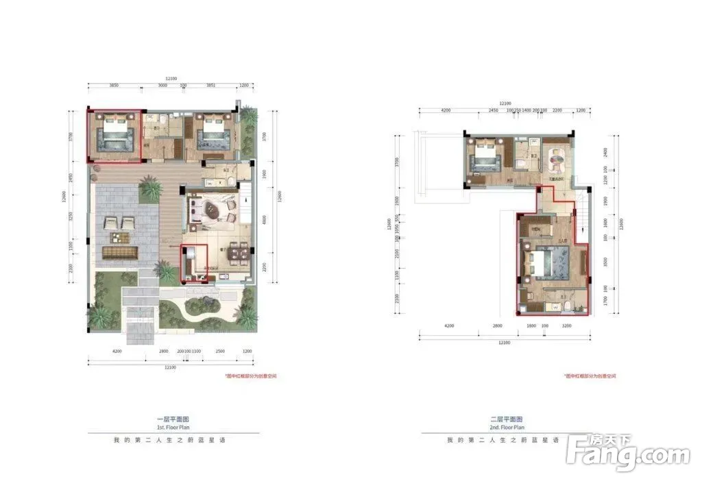1:入户玄关,绿意环伺身边,实现花园成为居者私有 2:全民厅室空间,餐厅邀约阳光美景,与湖光山色龙然对饮 3:舒适主卧空间,大瓢窗对景阳光,身心舒缓**交融 4:扶梯而上,室外庭院跃然眼前,将天地盛景纳为私藏 5:空中主卧,独立卫浴室,与庭院园林美景水乳交融。