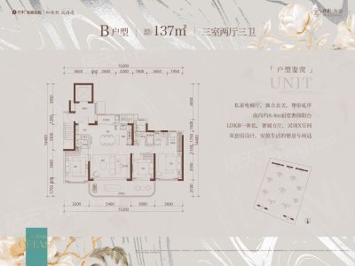 私家电梯厅人户,归家至高礼遇 约8.4M三面阔境阳台,清风美景人室LDKB一体化,奢阔方厅,灵动X空间居室双套房设计,阅鉴尊贵日常