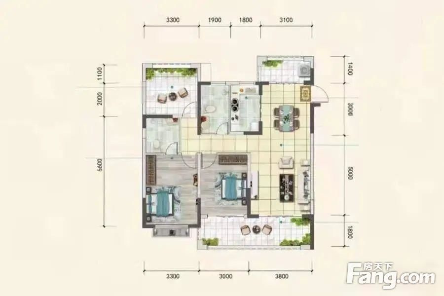 户型齐全,主打户型方正,动静分离,主卧带卫二居