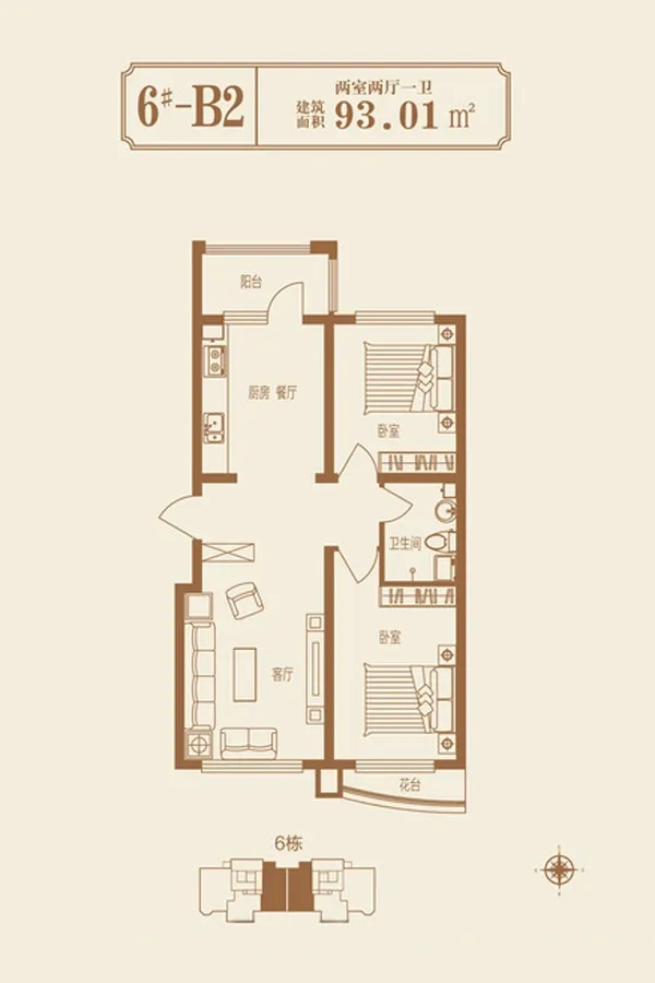 户型齐全,主打户型方正,卧室朝南二居