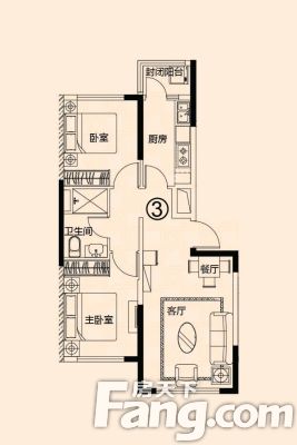 户型齐全,主打客厅朝南二居