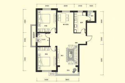 户型齐全,主打南北通透,客厅朝南,主卧朝南,餐客分离二居