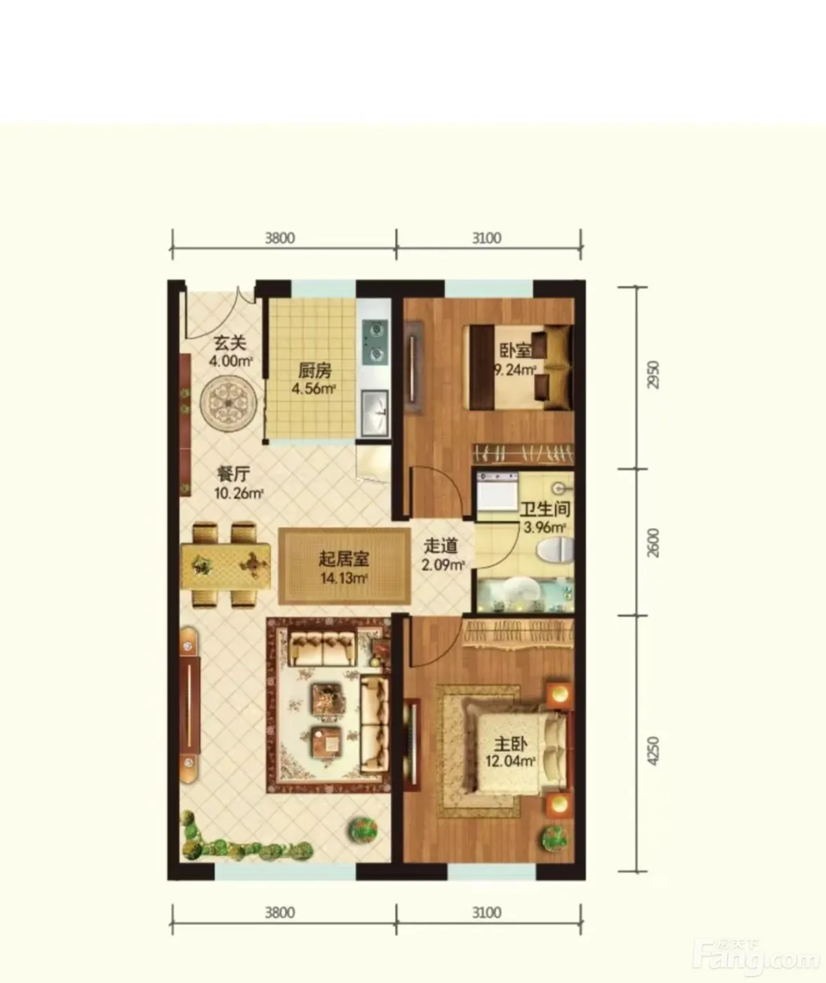 户型齐全,主打主卧朝南,卧室带阳台二居