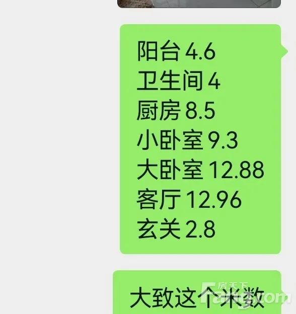 没有浪费空间,得房率高, 阳台4.6 卫生间4 厨房8.5 小卧室9.3 大卧室12.88 客厅12.96 玄关2.8 大致这个米数,南北通透,精装修,赠送全屋家具家电,拎包入住,交通非常便利