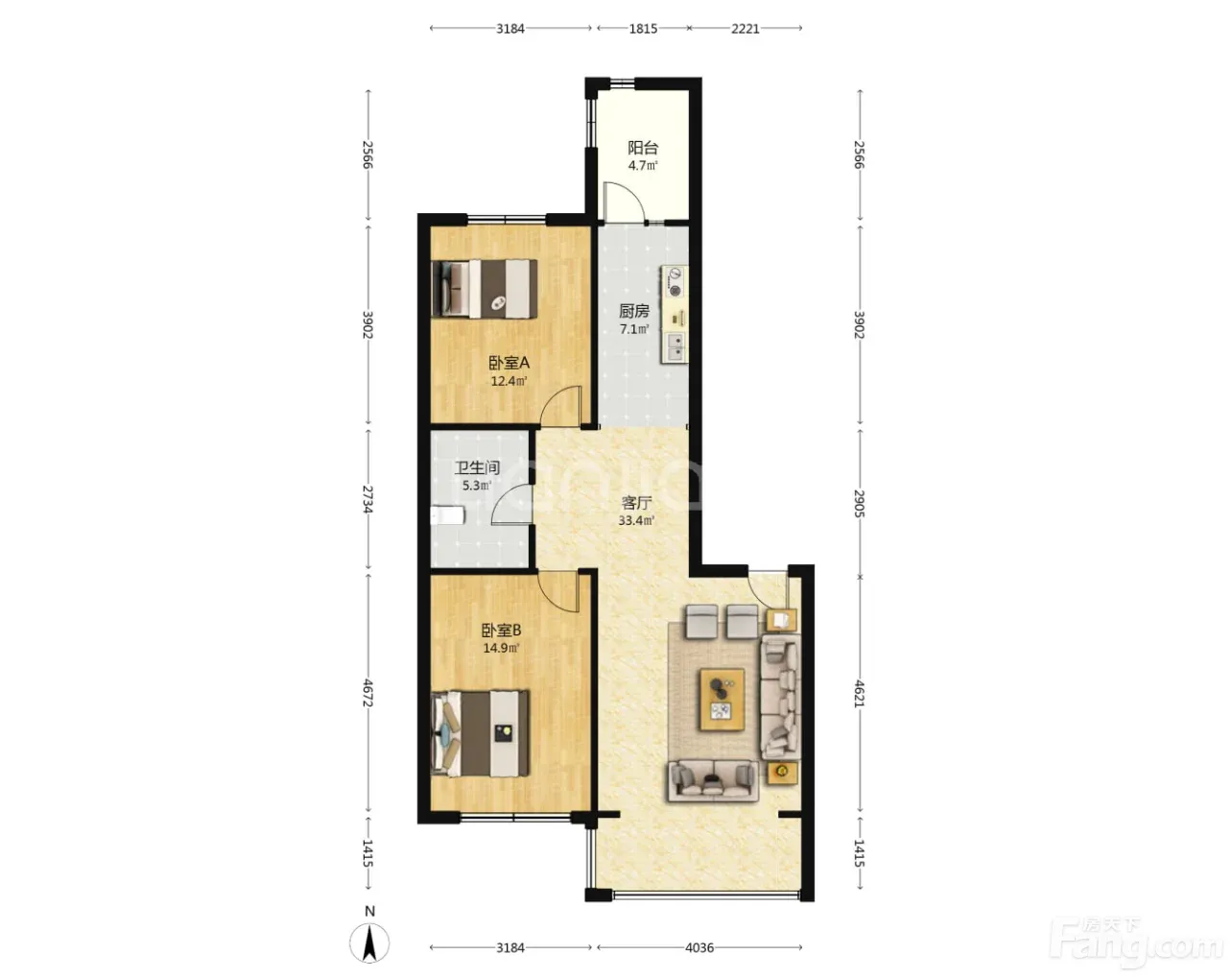 呼兰 明月浪漫城 2室1厅 109.00㎡ 55.50万