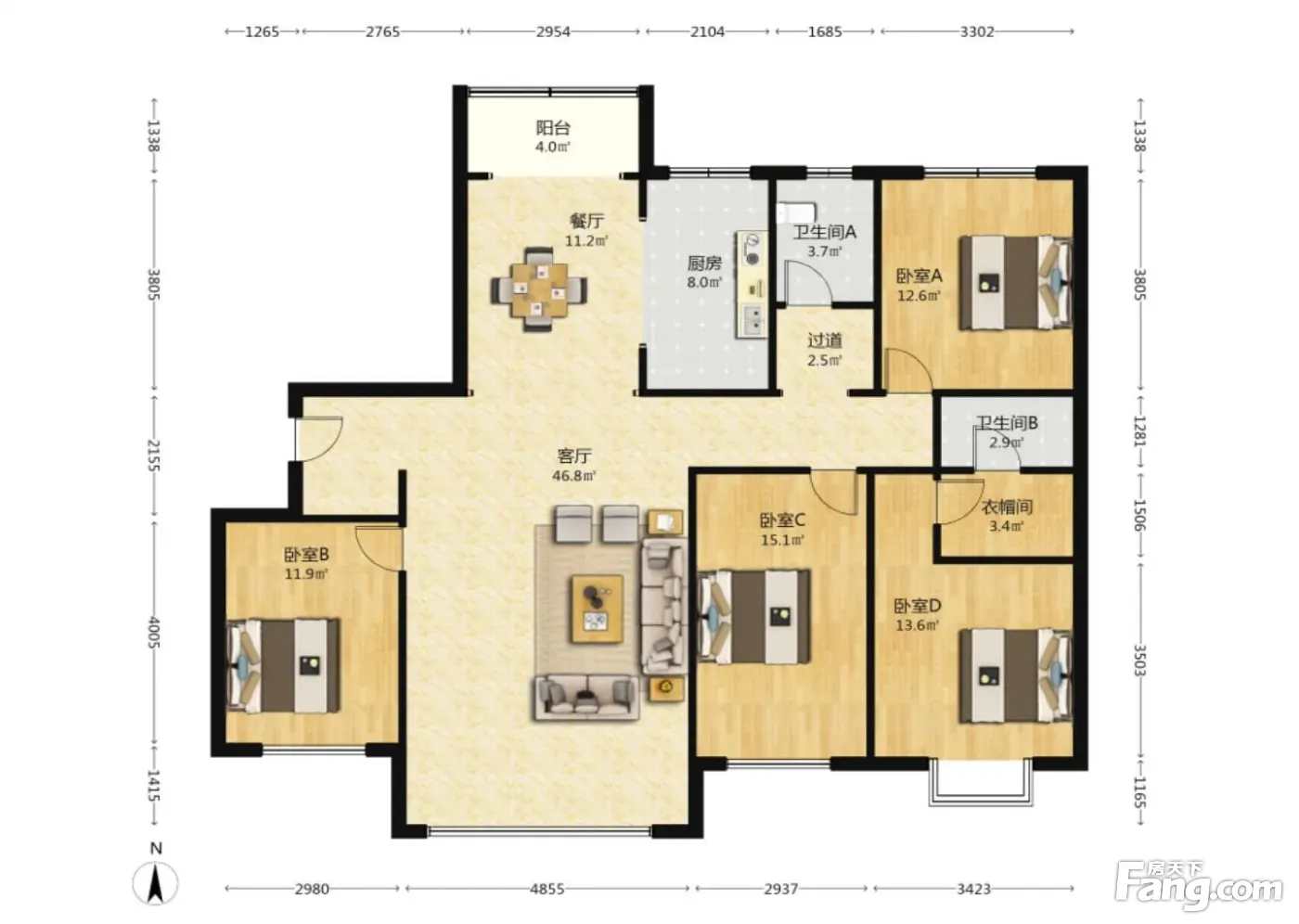 户型齐全,主打南北通透,客厅朝南三居