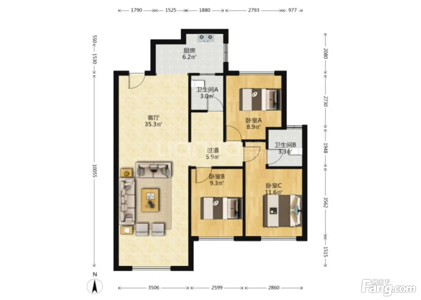 户型齐全,主打动静分离,独立玄关,主卧套间三居