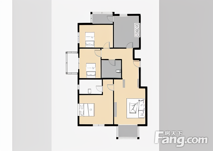 户型齐全,主打明厨,客厅朝南二居