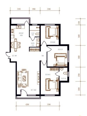 户型齐全,主打户型方正,客厅朝南,主卧朝南二居