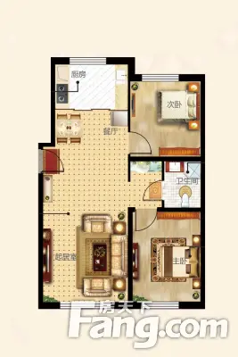 永泰城 两室一厅 86米 南北户型