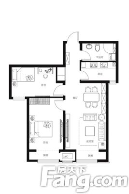 户型齐全,主打厨卫不对门,客厅朝南,主卧朝南二居