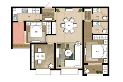 户型齐全,主打户型方正,动静分离三居
