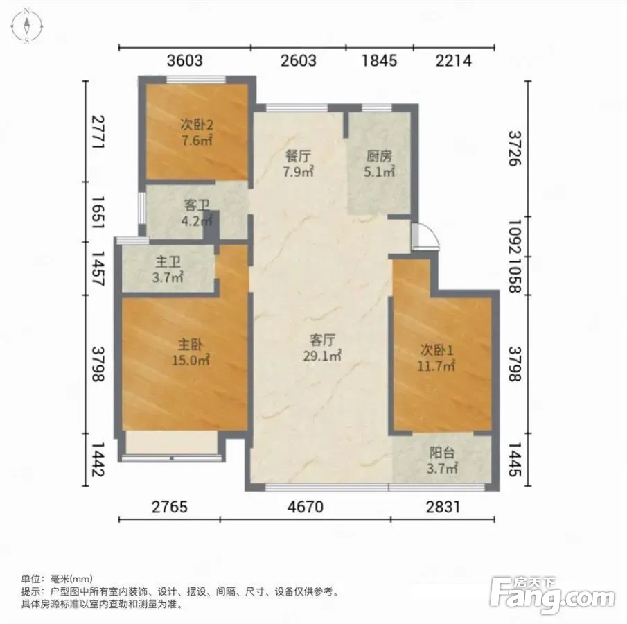 户型齐全,主打南北通透,全明格局三居