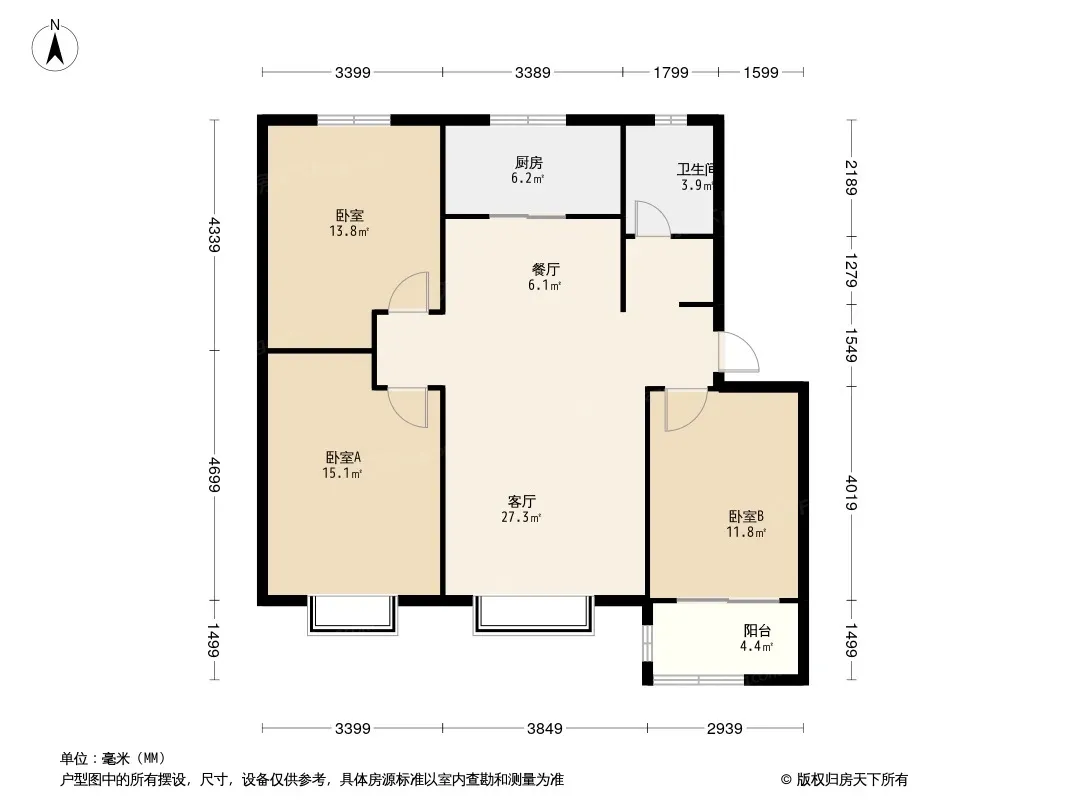 户型齐全,主打南北通透,客厅朝南,卧室朝南,独立餐厅,大面宽阳台三居