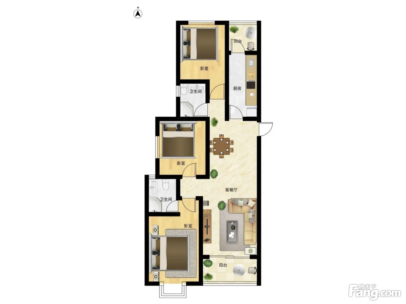户型齐全,主打客厅朝南,卧室朝南三居