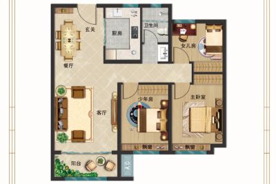 户型齐全,主打南北通透,全明格局,户型方正,采光充足,大面宽阳台三居