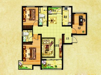 户型齐全,主打南北通透,采光充足三居
