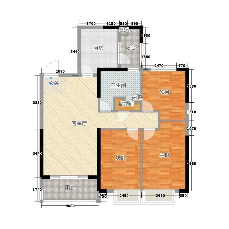 户型齐全,主打客厅朝南,卧室朝南三居