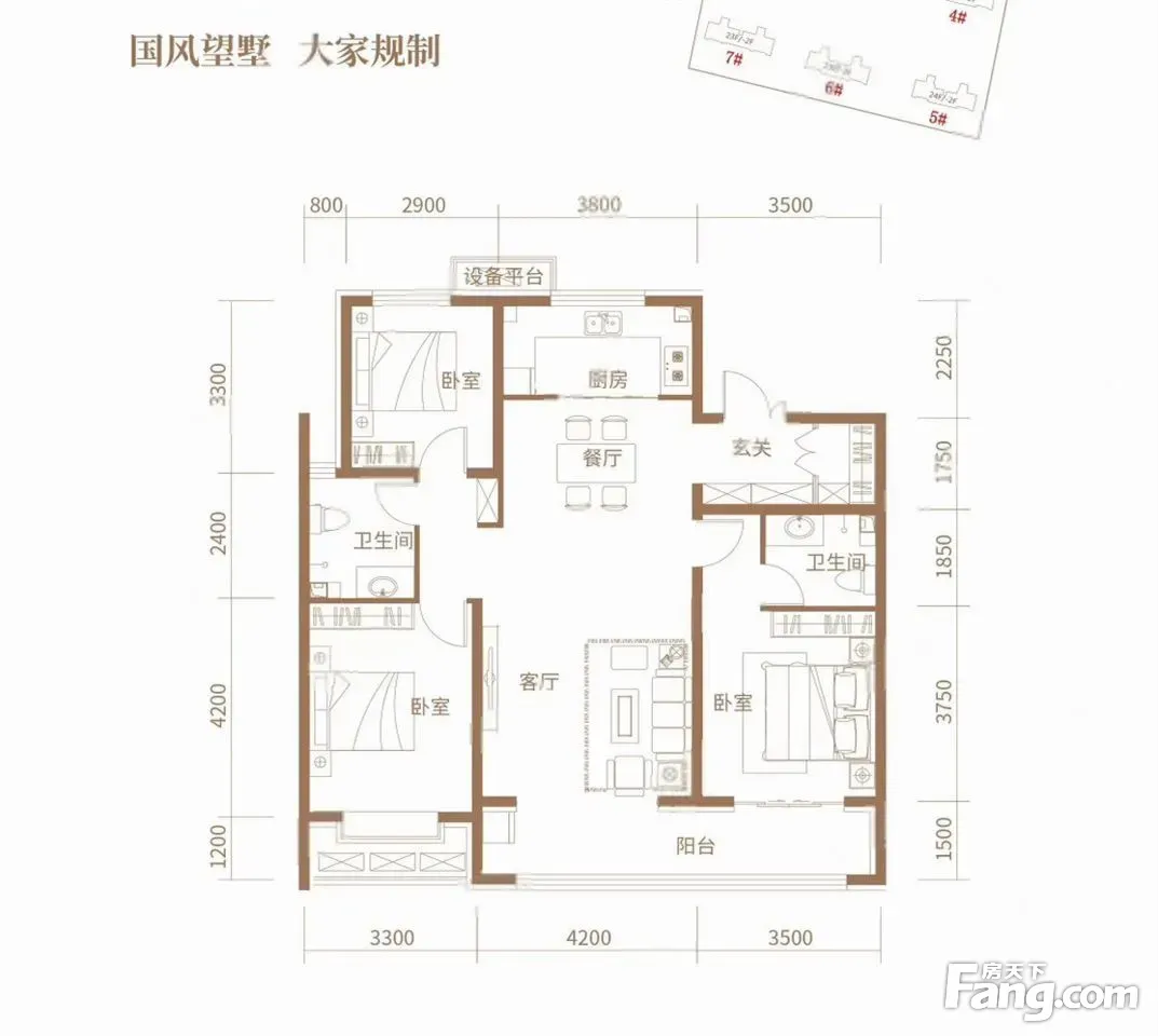 户型齐全,主打全明格局,动静分离,卧室朝南三居