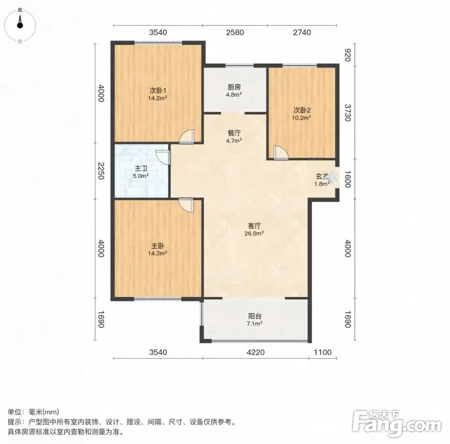 户型齐全,主打采光充足,客厅朝南,主卧朝南三居
