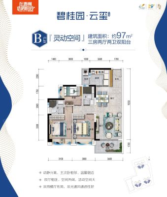 碧桂园云玺公馆户型主要有97平-97平的动静分离,高附赠空间,采光充足的三居 、118平-118平的南北通透,全明格局,动静分离的四居 。