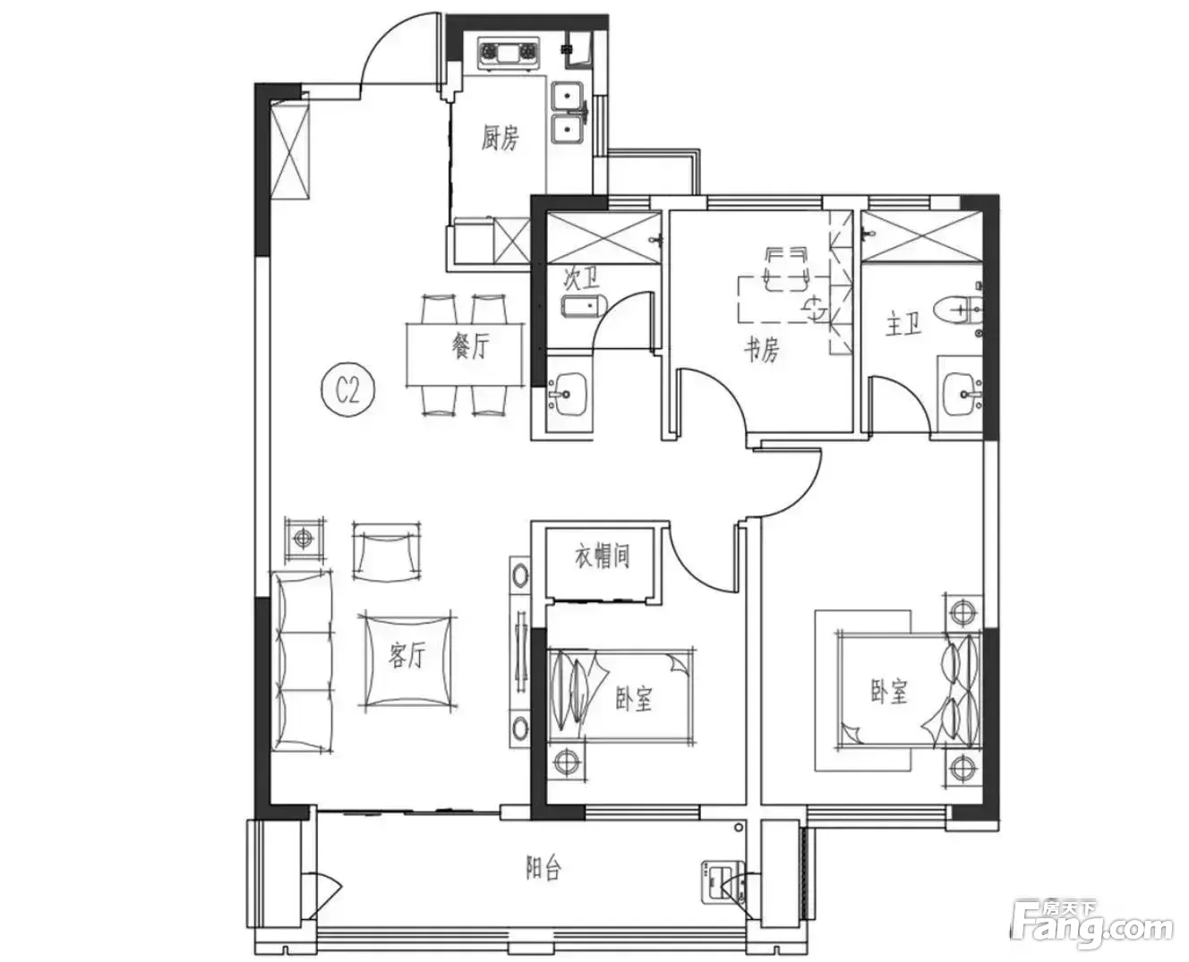 户型齐全,主打独立衣帽间,明厨三居