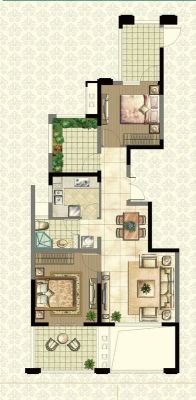 户型齐全,主打露台三居