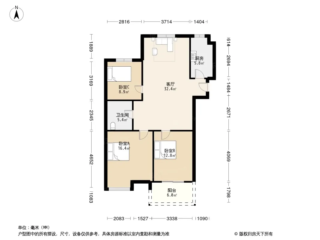 户型齐全,主打户型方正,明卫,明厨,双卧朝南,主卧朝南三居