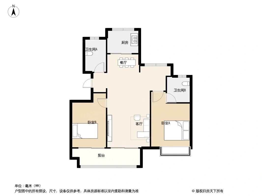 户型齐全,主打南北通透,全明格局三居