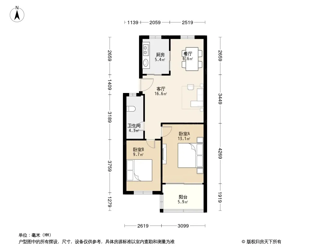 户型齐全,主打户型方正,明卫,明厨,客厅朝南,主卧朝南三居