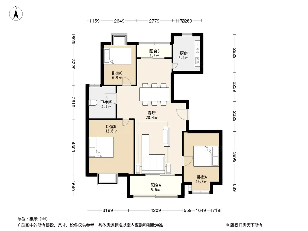 户型齐全,主打户型方正,明卫,明厨,双阳台,双卧朝南,主卧朝南三居