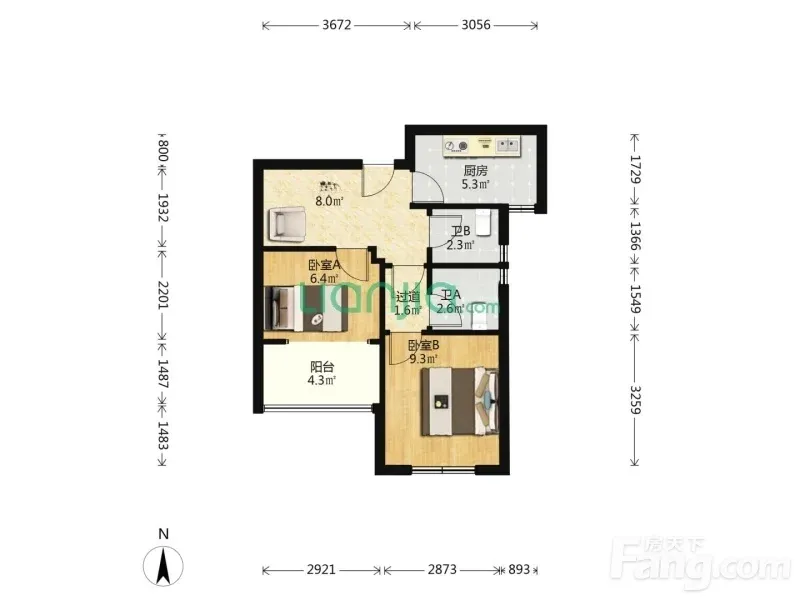 2室1厅2卫