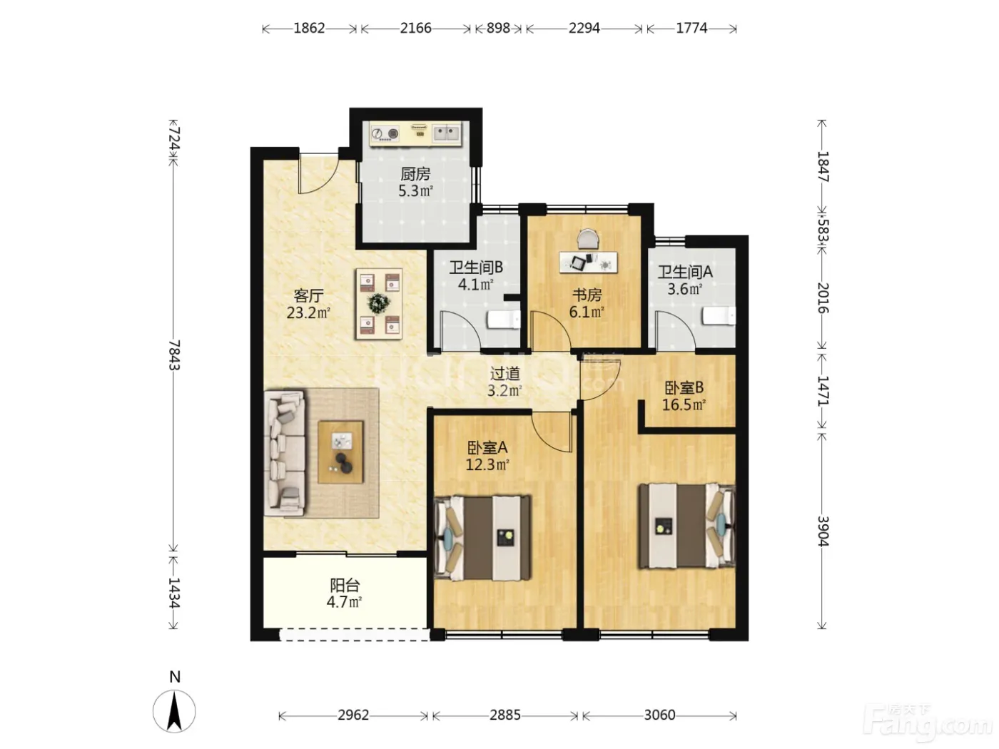 3室1厅2卫
