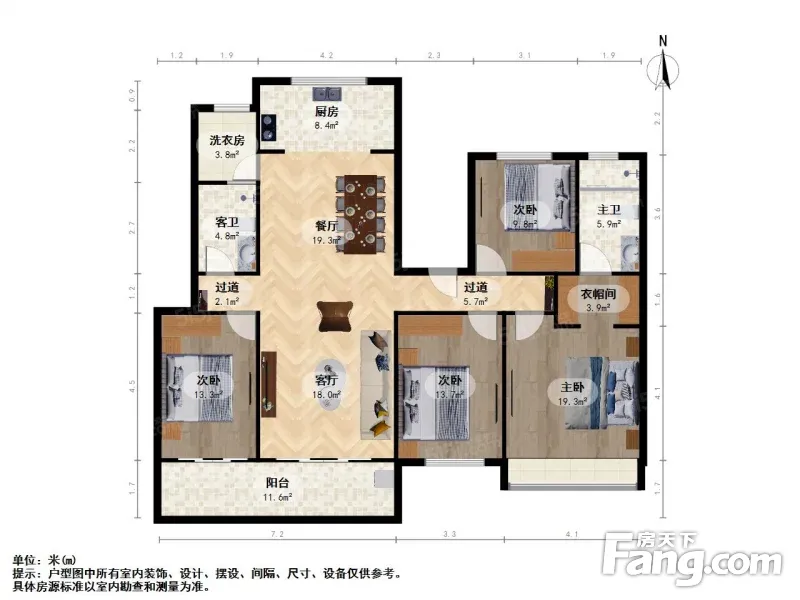 户型齐全,主打南北通透,全明格局四居