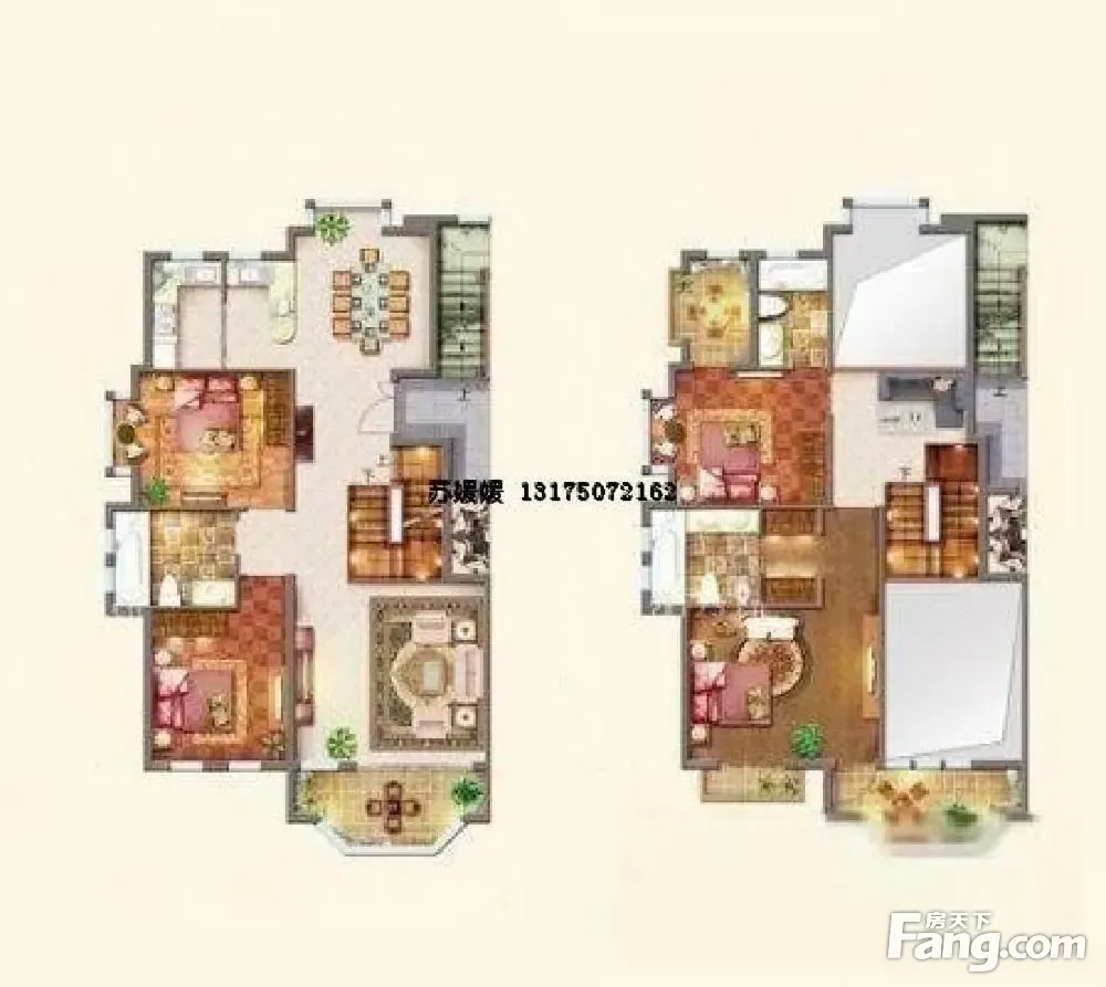 一楼:朝南落地窗设计,南北通透!有一个朝南老人宽敞、明亮、套房设计,厨房朝北; 二楼:三房朝南,主卧带衣帽间带35平大露台,朝南两个卧室旁边带衣帽间和露台。全部套房设计。南进门,前后视线无遮挡,房子装修进口材质,装修后维护的好,一直空闲,物品使用的都珍惜,一进屋就感觉是高品质