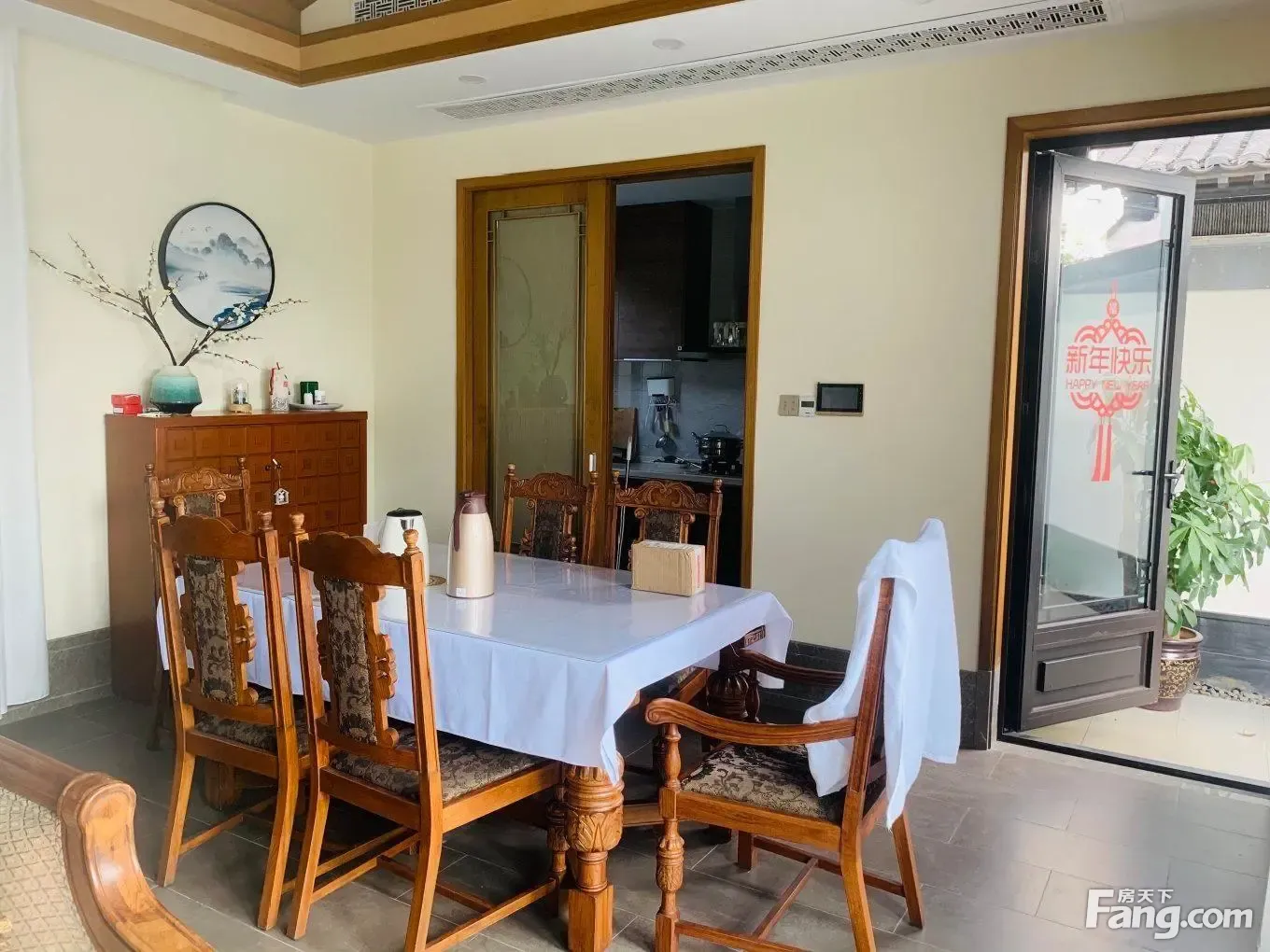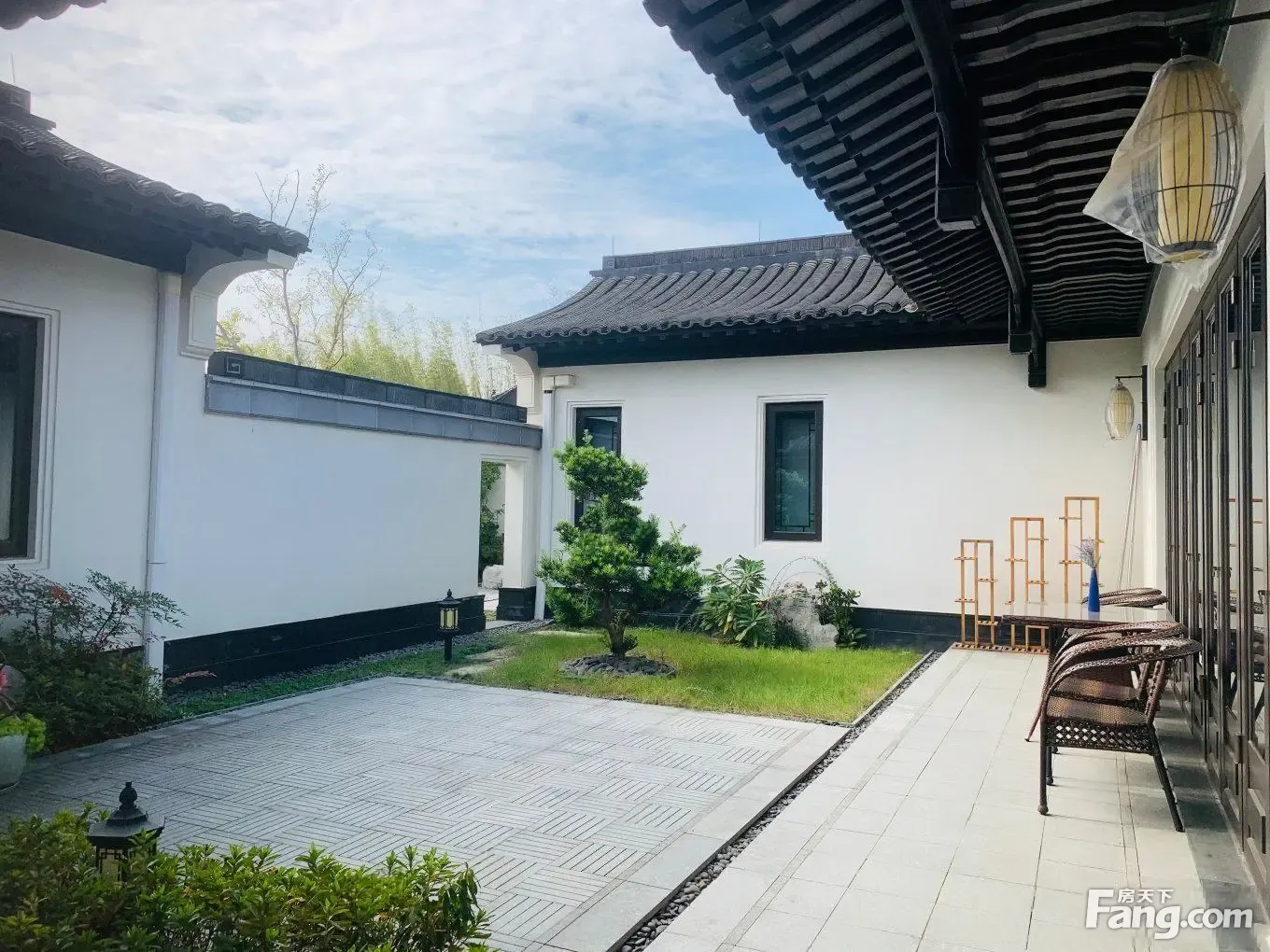 入门是一个小花园,入户是一个玄关,朝南是一个套房次卧,朝北是一个厨房封闭式的朝南客厅面宽7.3米,客餐厅合一,旁边就是一个主卧也是套房设计,出客厅门就是花园,望出去可以看到远山,花园可以做、鱼池等房子北面还有一个书房,前面还有一个小院子,可以放一个养鱼的缸房子特点:平层三房设计,够一家人住,视野好,在客厅看山景,一眼看众山小,精装修拎包入住