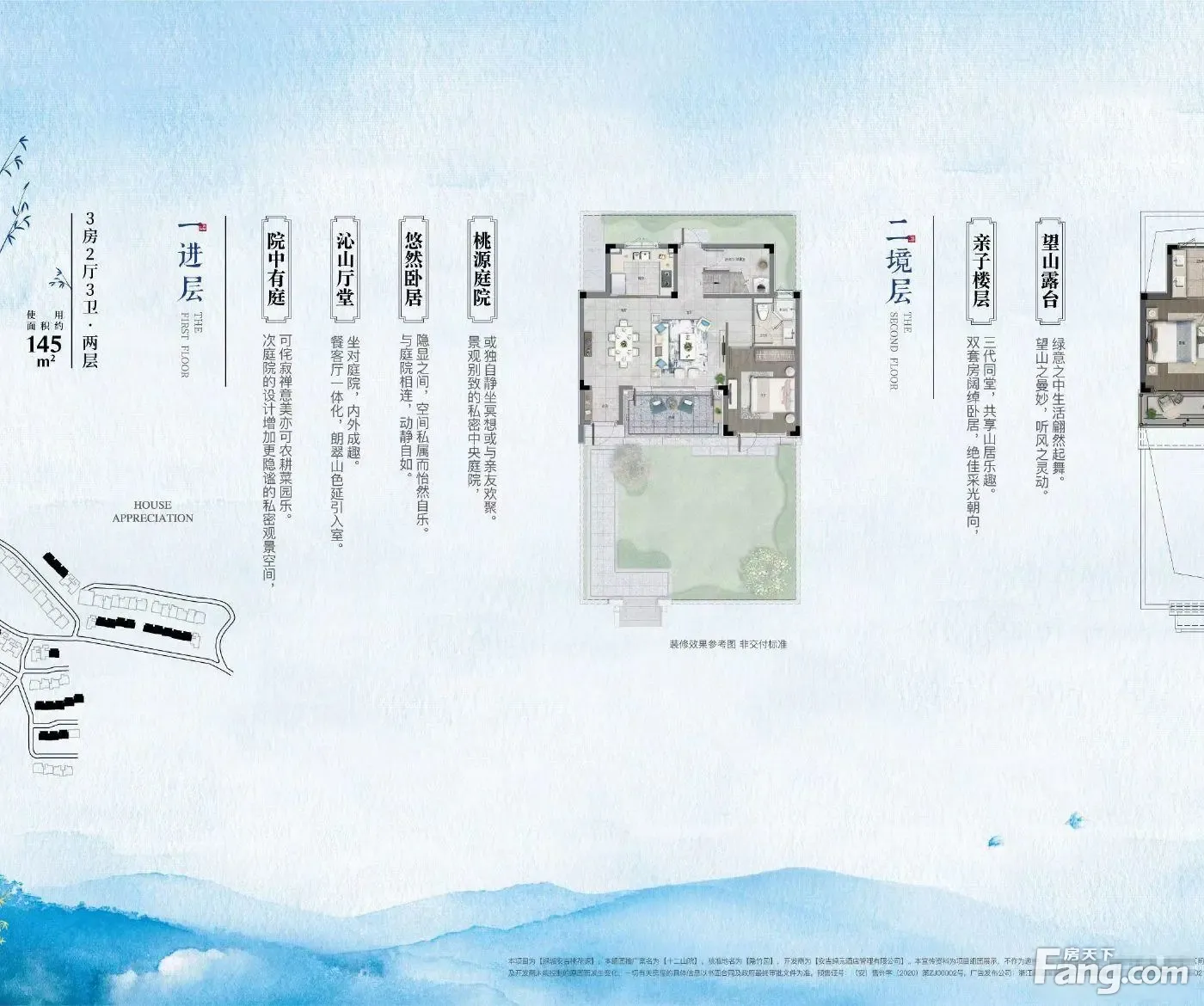 1:打造长三角宜居生态山水合院青山绿水环境好 2:杭州后花园,上海第二故乡,绿植覆盖率百分之70以上空气负氧离子高 3:安吉桃花源独特的山景位置坐落灵峰山景区打造千亩原生态休闲养生度假为一体的别墅区