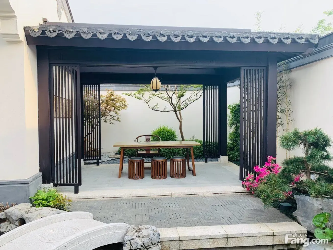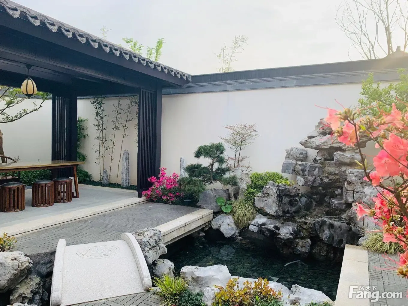 新上 桃李春风 小合院,豪装、做好了庭院水系景观