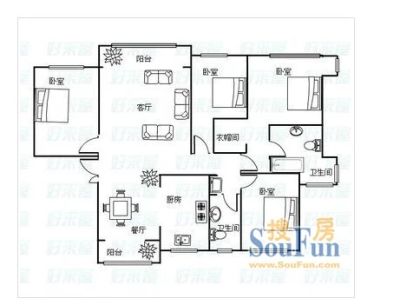 户型齐全,主打户型方正,明厨,明卫,双卧朝南,主卧朝南三居