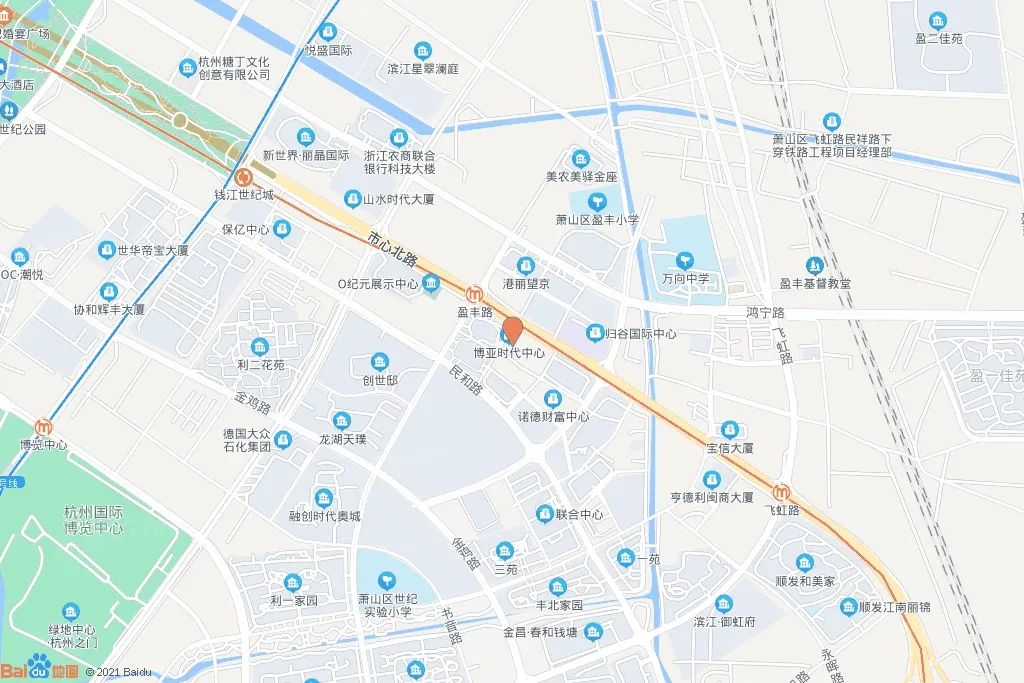 地铁一号线江陵站,地铁2号,6号线钱江世纪城站出口500米,大楼楼下有多路公交车通往全杭州