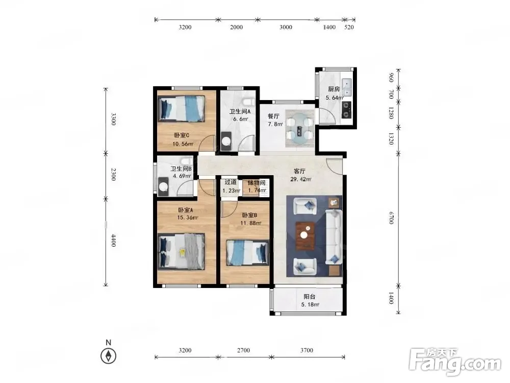 3室2厅1卫