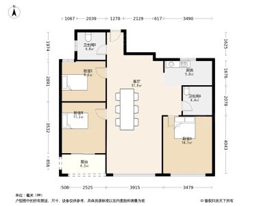 户型齐全,主打户型方正,明卫,明厨,客厅朝南,主卧朝南三居